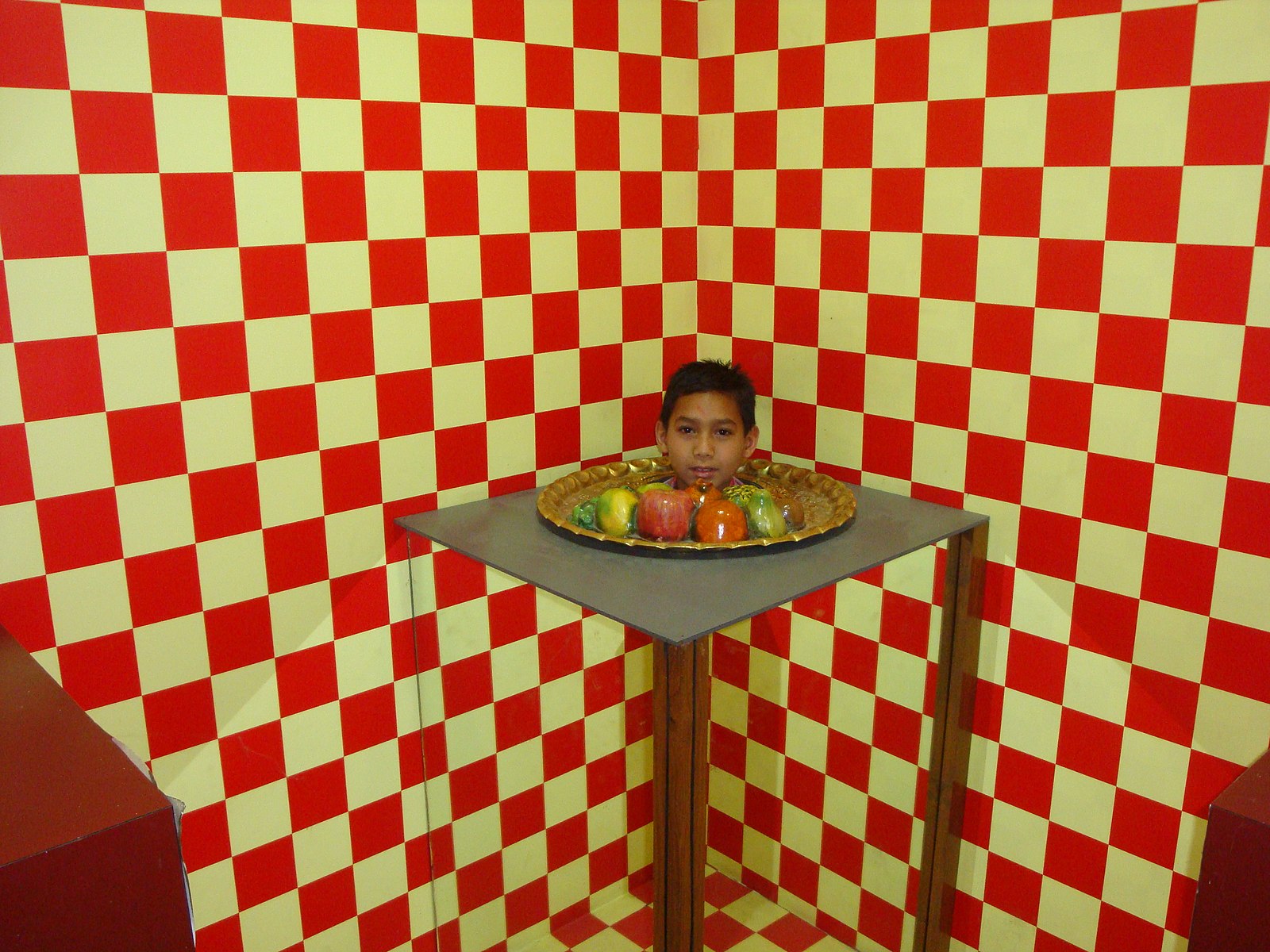 Regional Science Centre, Bhopal – Head on a Platter. The child entered the exhibit from the back and popped his head through the hole. 2012. Utkarshraj Atmaram. Wikimedia Commons