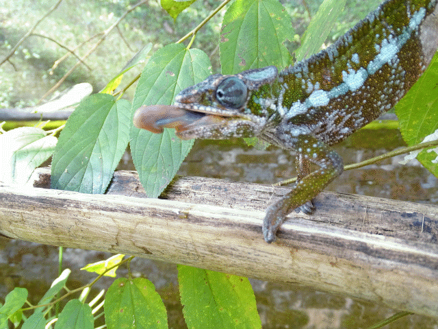 Chameleon’s tongue striking at food, Animated GIF. SurreyJohn. 2014. Wikimedia Commons.