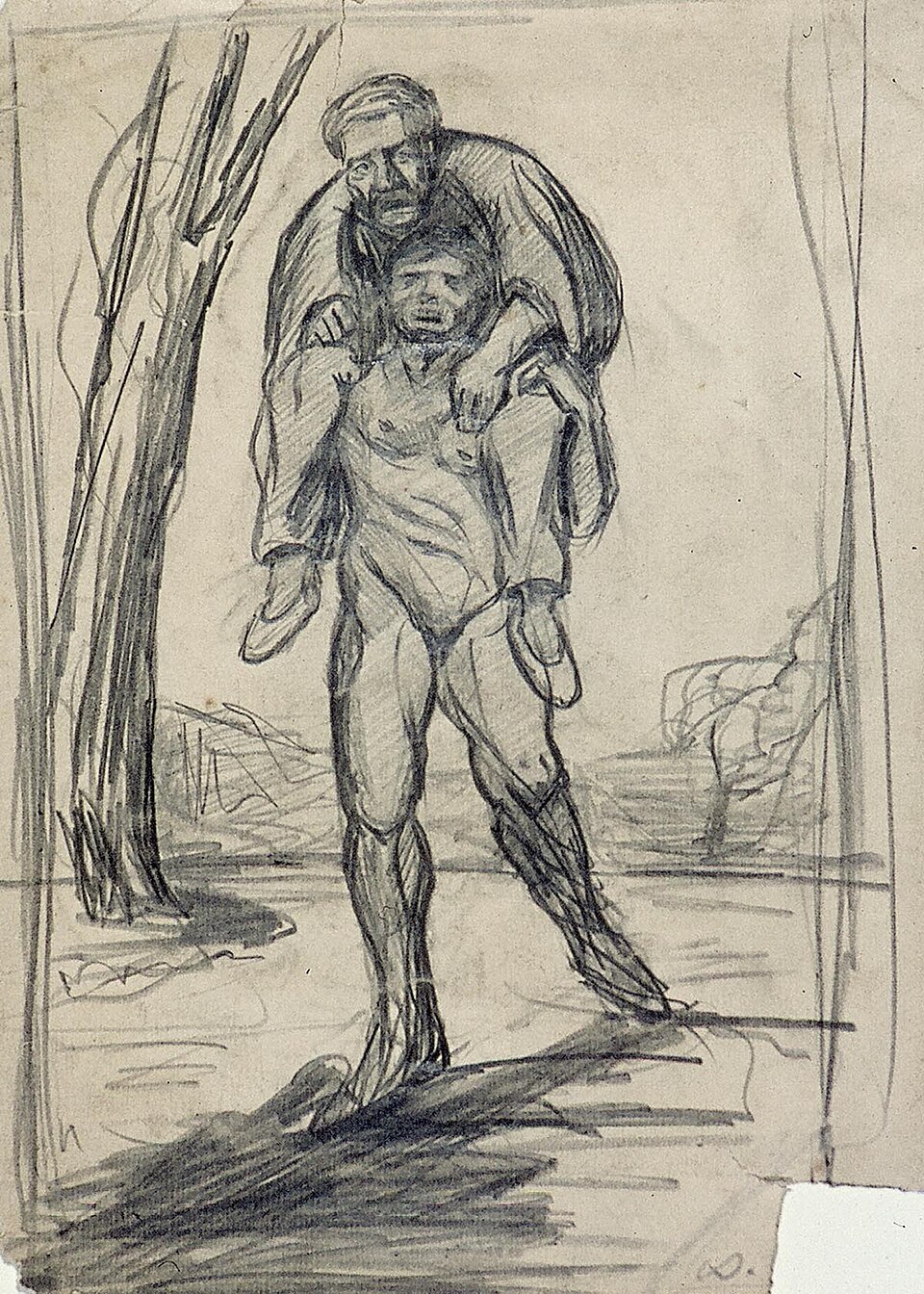 Young Man Carrying an Old Man on His Back by Theo van Doesburg. c. 1904. Wikimedia Commons